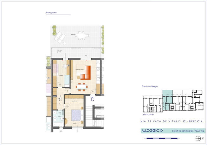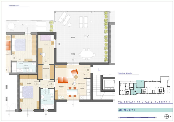 Brescia2 Muller 12: ultimi due Trilocali 75mq. con ampie terrazze, posto auto interno alla corte, cantina e garage.